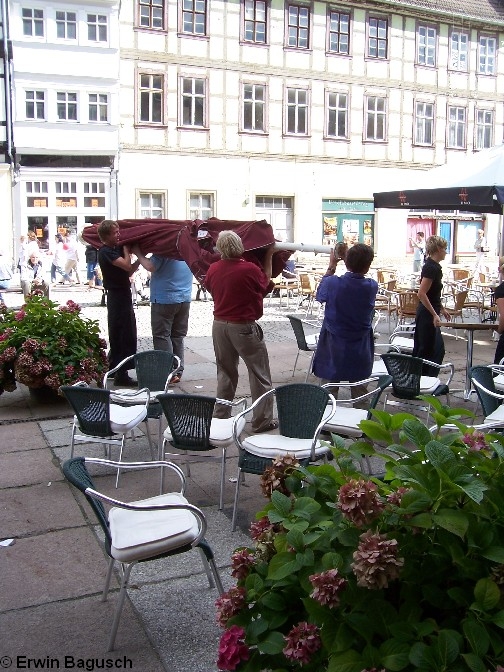 Der Marktplatz von Quedlinburg am 18. August 2007 wird für den Sommernachtstango vorbereitet ... (b_070818_08pg)