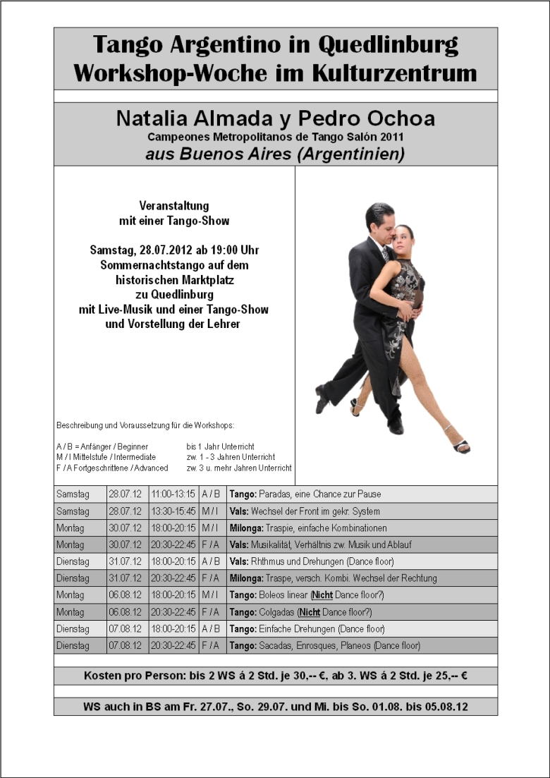 Ankündigung: Workshop-Woche mit Natalia Almada y Pedro Ochoa (Buenos Aires) vom 28.07. bis 07.08.2012.