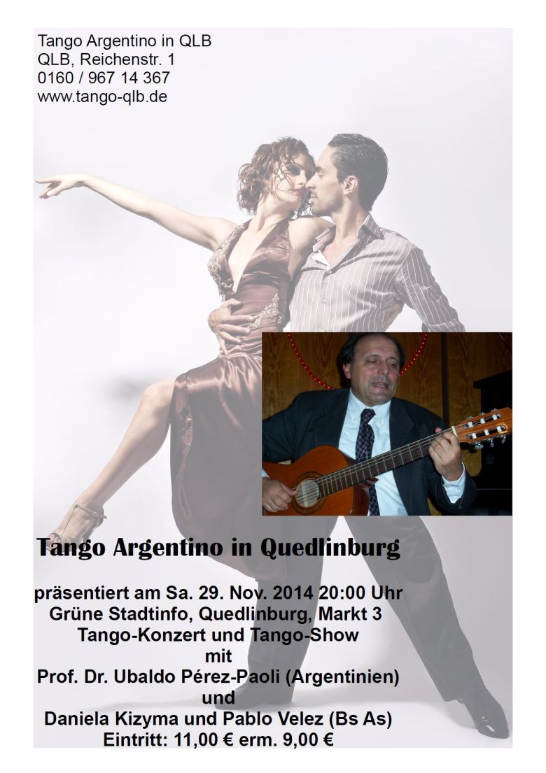 Ankündigung: Tango-Ball mit Daniela Kizyma y Pablo Velez (Buenos Aires) und Ubaldo Pérez-Paoli am 29.11.2014.