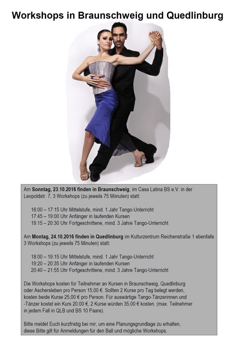 Ankündigung Plakat: Workshop mit Daniela Kizyma und Pablo Velez in Quedlinburg, 24.10.2016